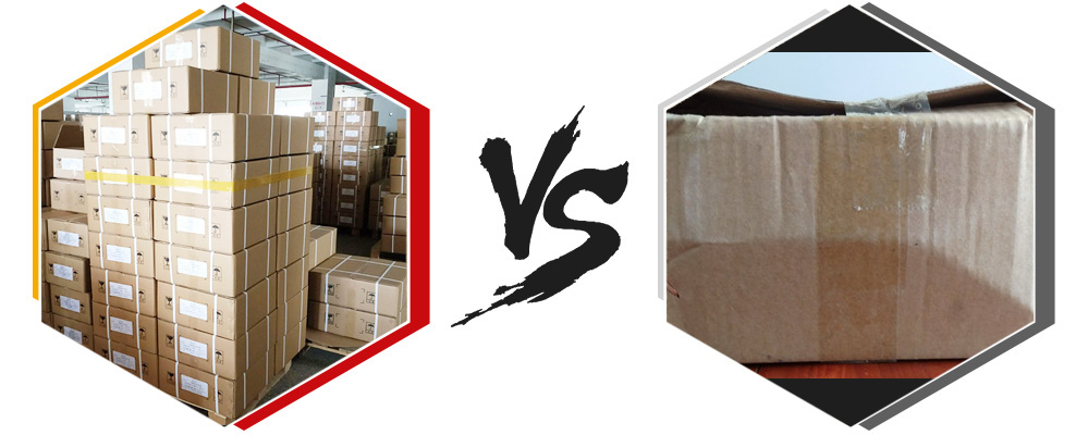 其他生產(chǎn)商為降低成本,一般采用普通紙箱,長途運(yùn)輸中很容易造成紙箱破損、變形,內(nèi)包裝使用廉價(jià)再生料膠袋包裝,容易破損。 導(dǎo)致問題:包裝變形,容易受潮,貨物損失,甚至中途丟失,誤工誤時(shí)。